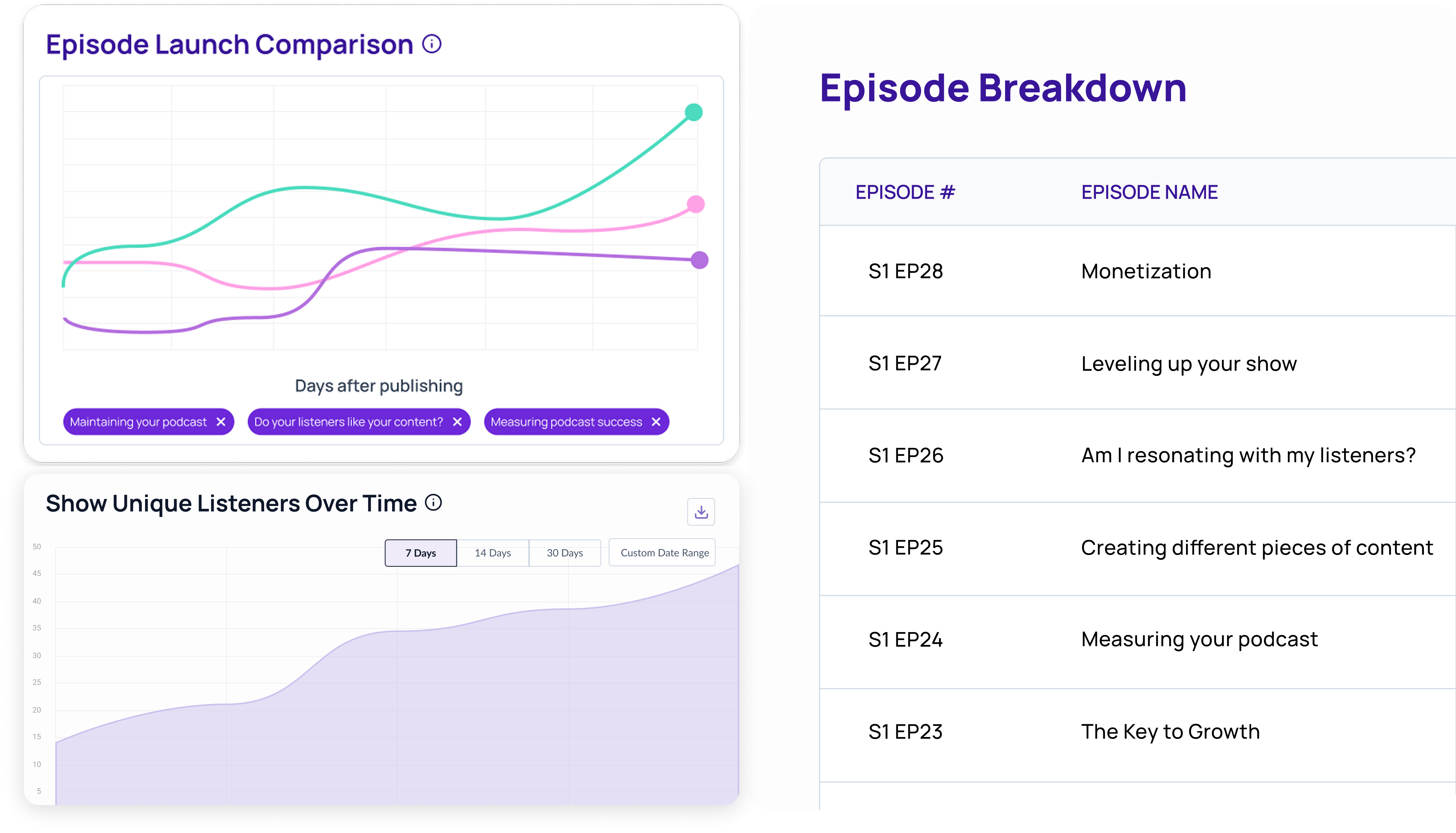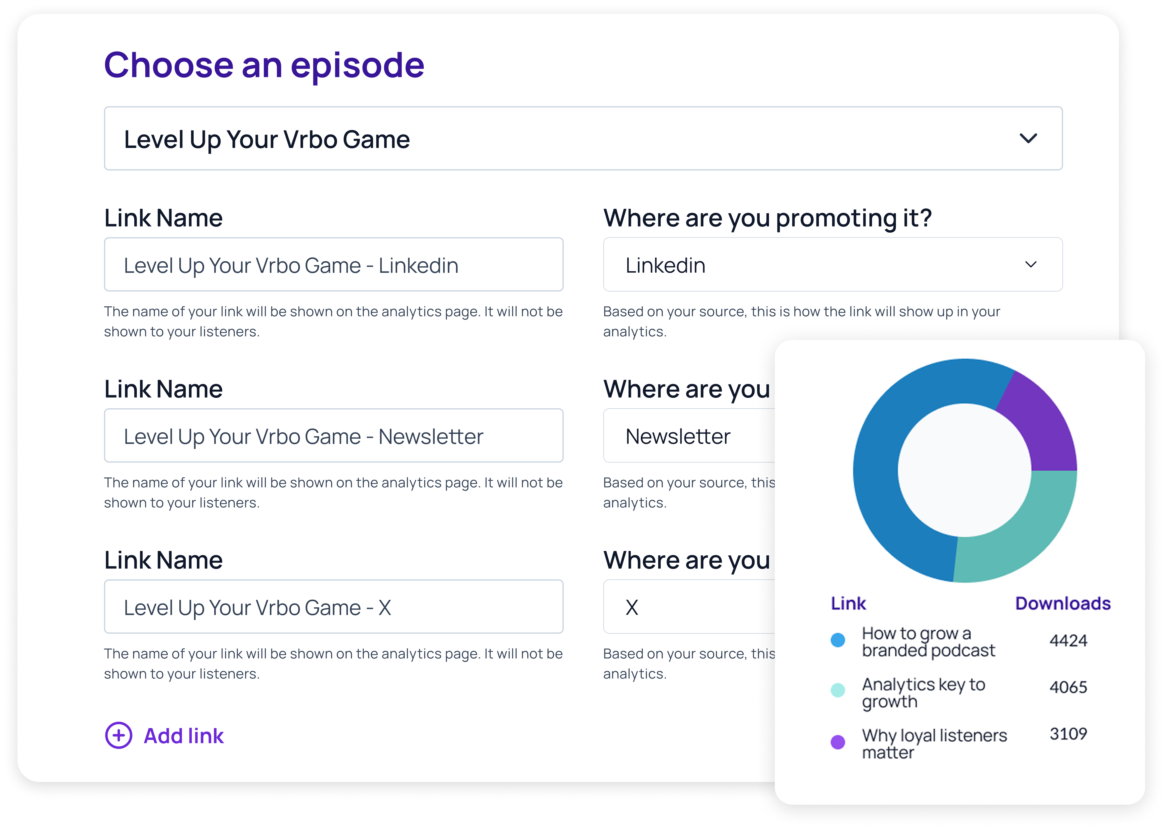 Pinpoint which marketing channels and campaigns drive the most podcast downloads and engagement, and which ones aren’t performing.