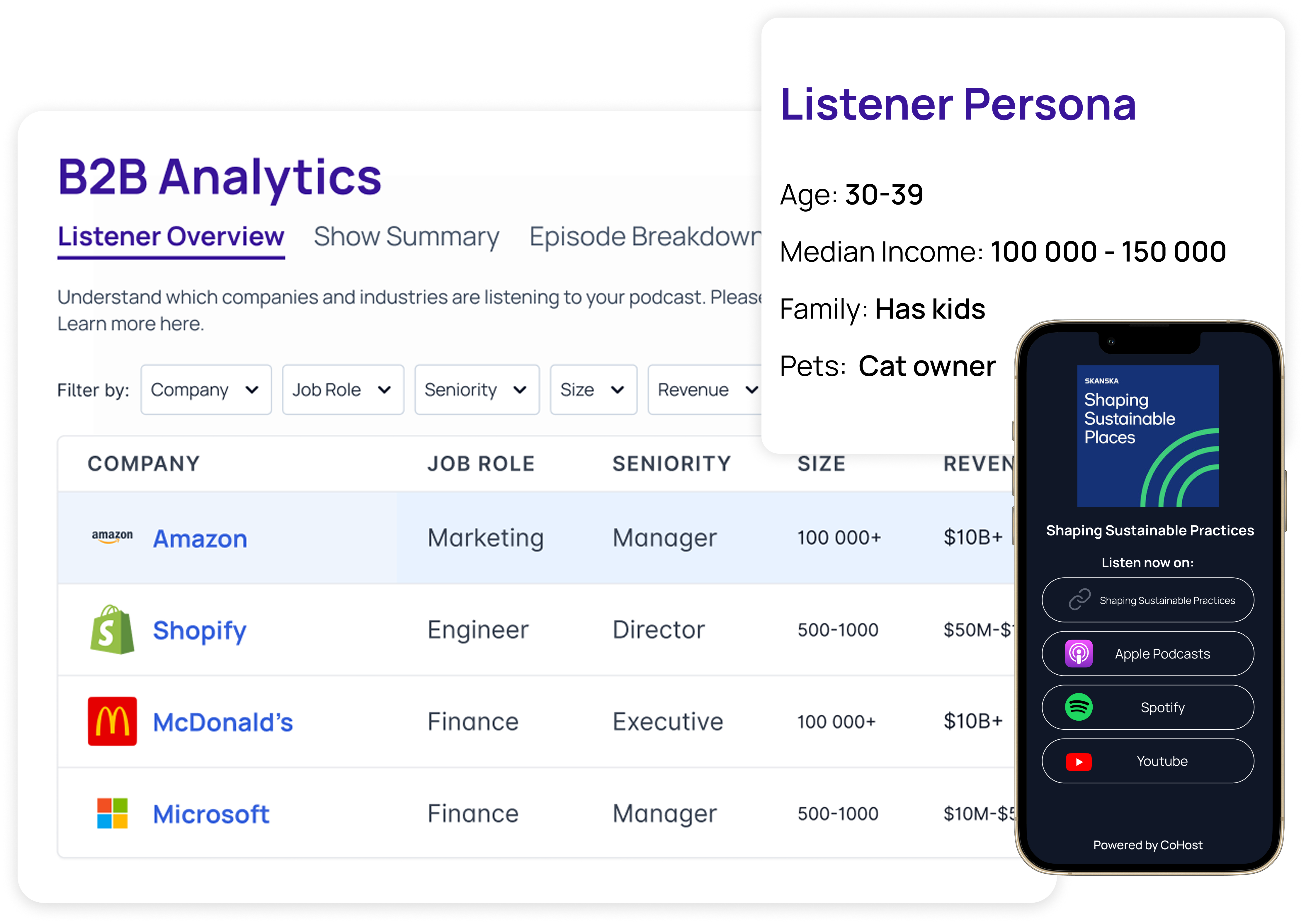Chartable tracked where your listeners came from. CoHost tells you who they are, what they do, and why it matters, giving brands and marketing teams the audience insights to connect podcast data directly to ROI.
