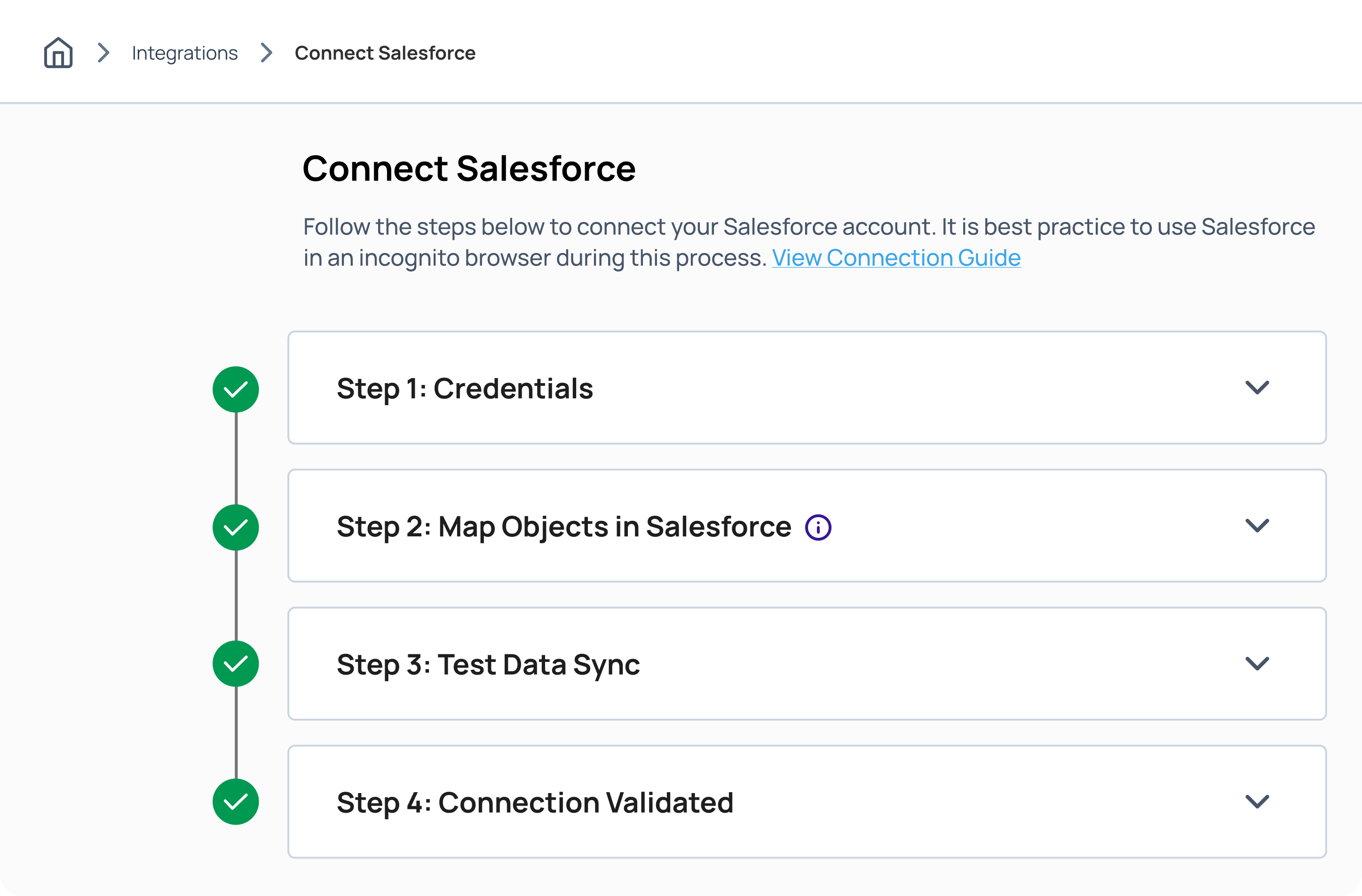 To implement, simply authenticate, approve scopes, and choose your cadence and data objects. Most teams complete setup in minutes. We will also provide mapping docs and a walkthrough. For more information, watch our tutorial here.