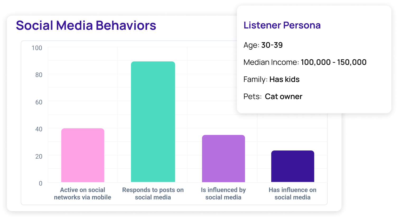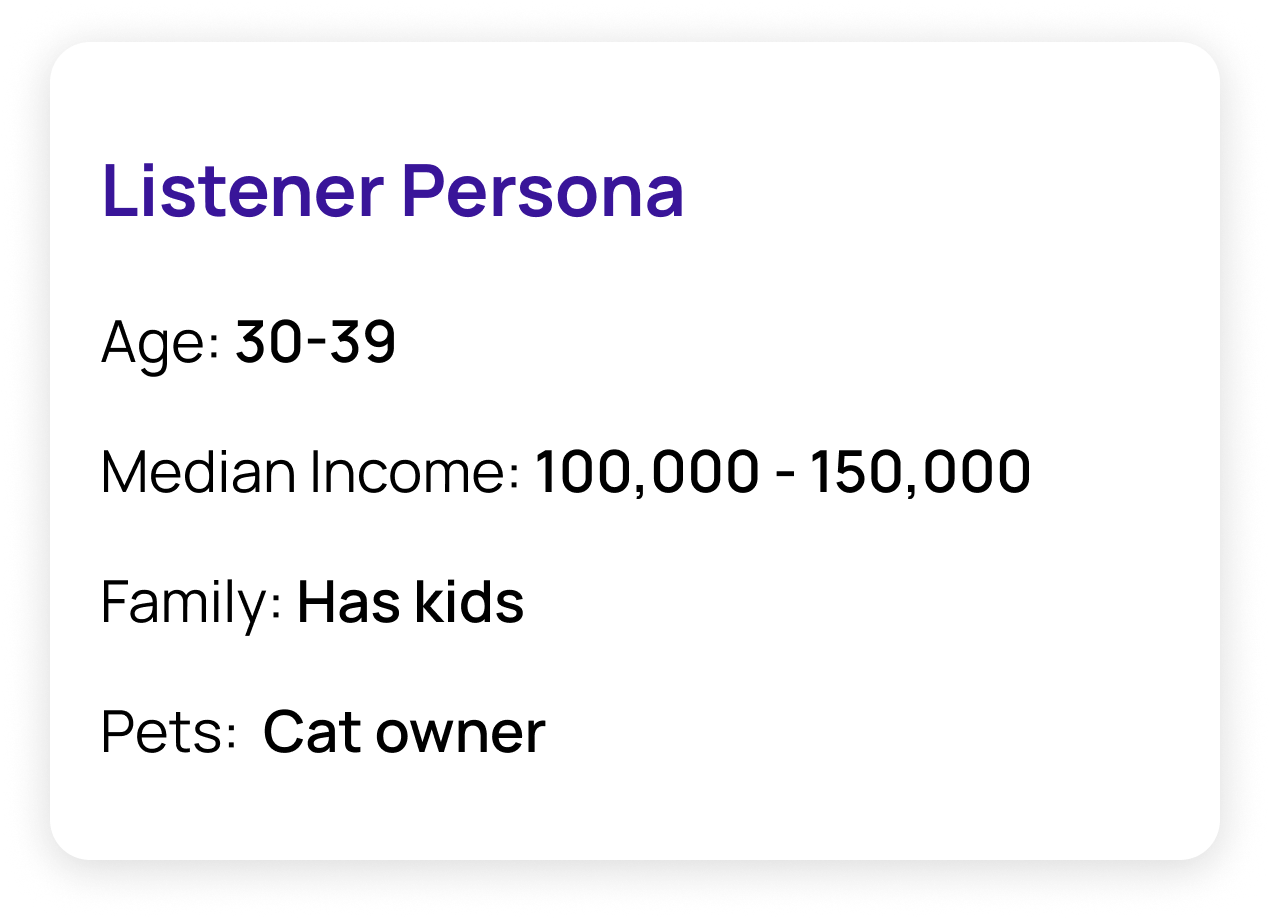 Age, location, income, family makeup, lifestyle habits, social media behavior, and more—go beyond the basics to understand who your listeners truly are.