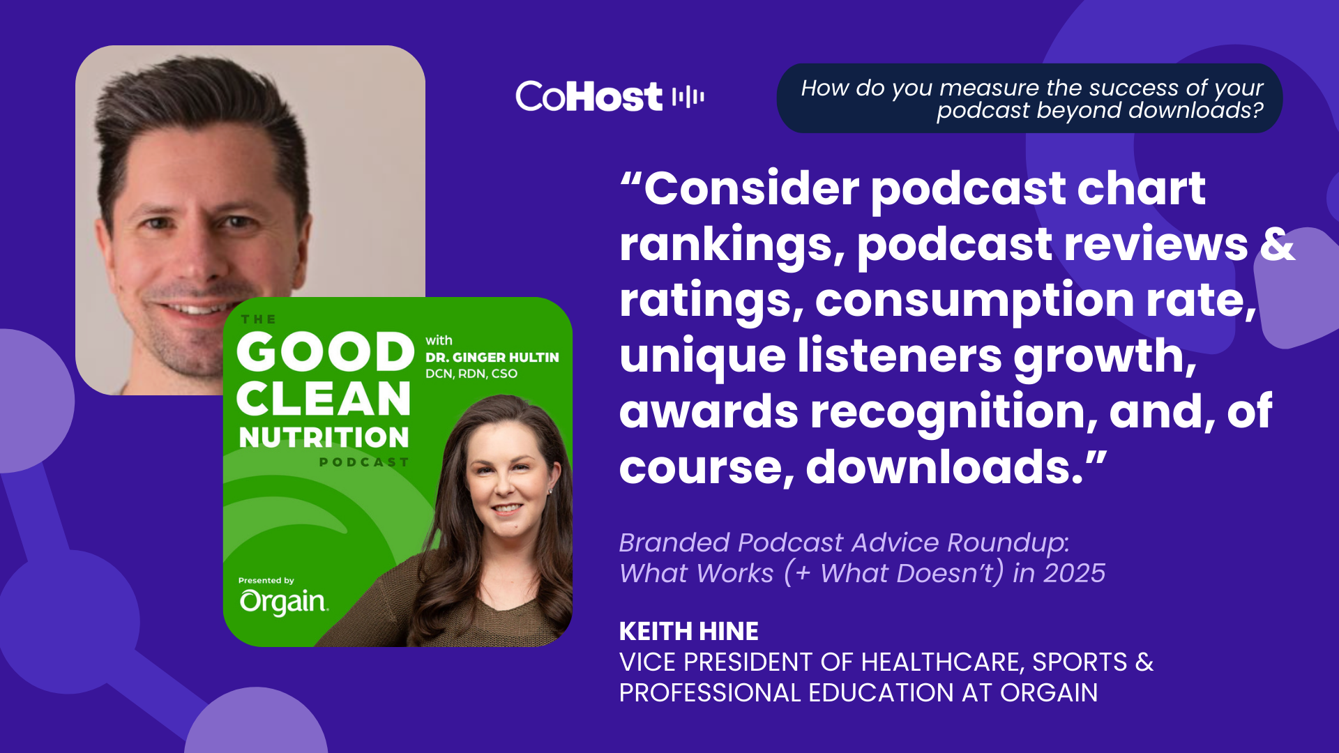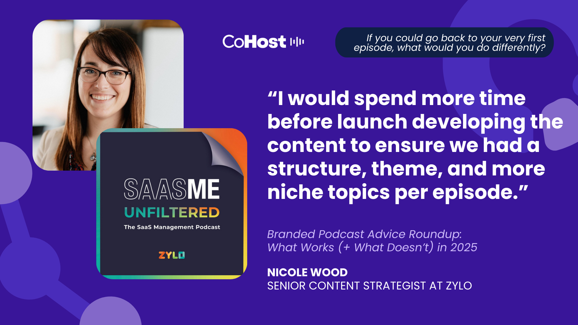 “I would spend more time before launch developing the content to ensure we had a structure, theme, and more niche topics per episode. That would have made it easier to identify guests and ensure episodes were more closely aligned to our overall content strategy.”