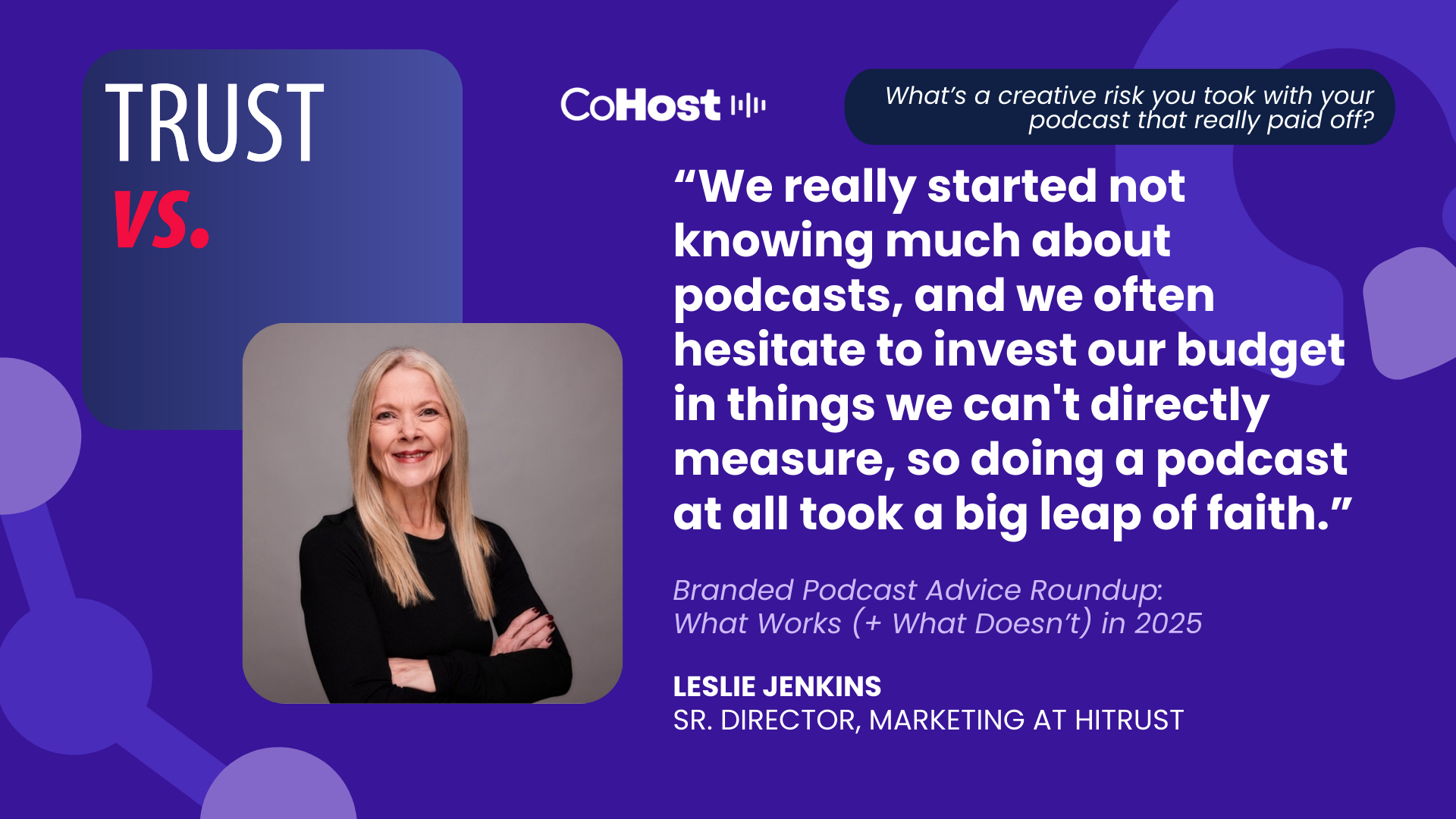 The podcast also creates cross-functional value. It’s not just a marketing tool — it supports sales, provides programming with a platform for thought leadership, and helps foster partnerships and executive engagement.