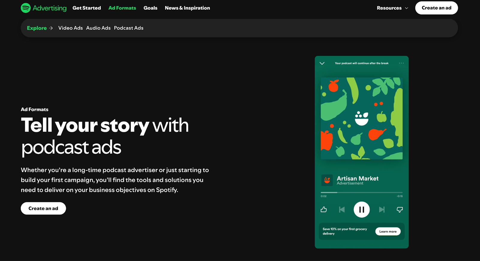 The winner of the Quill Podcast Awards “Best Podcast Advertising Platform”, Spotify offers the tools and solutions you need to achieve your business objectives – whether you’re new to podcast ads or know the ins and outs of the space.