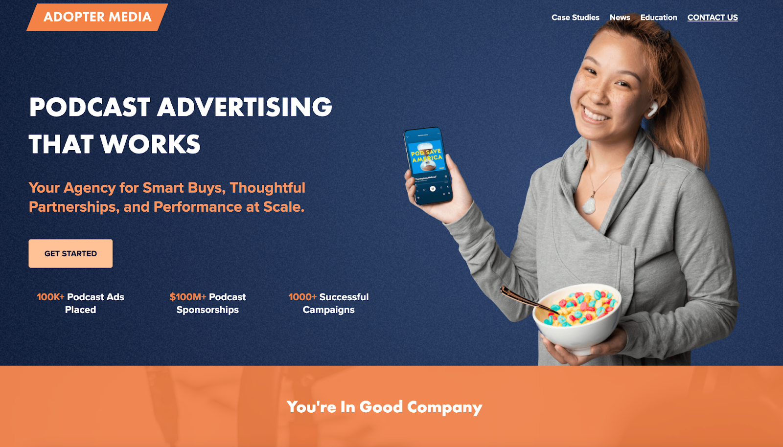 With offerings suitable for small and large brands alike, ADOPTER Media is a great option for brands looking to outsource much of their podcast advertising to an agency. With an impressive track record of over 100,000 ads placed on more than 25,000 shows, the agency boasts a portfolio of over 1,000 successful campaigns, representing sponsorships worth over $100 million.