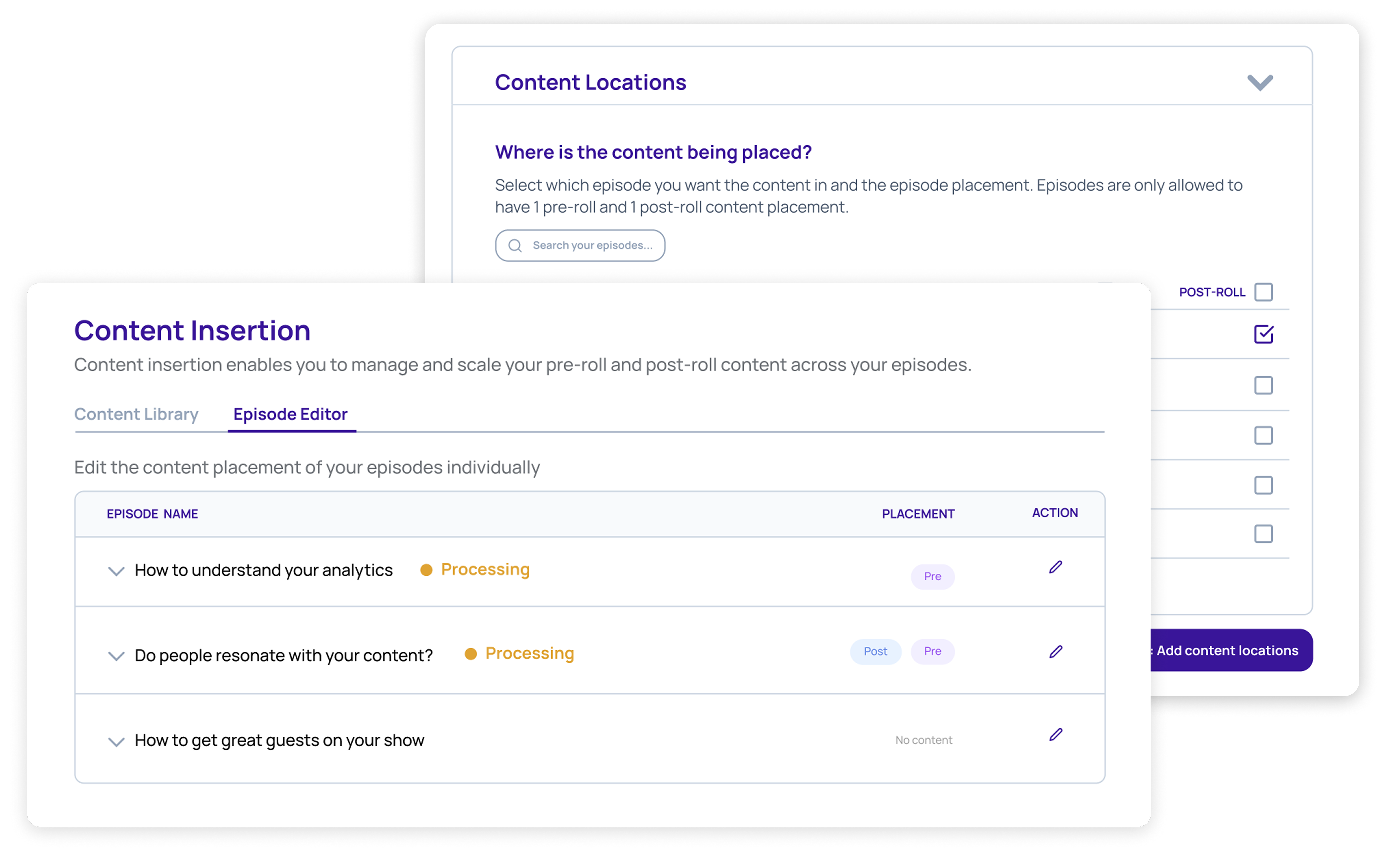 Dynamically insert pre- and post-roll audio across your episode catalog within minutes