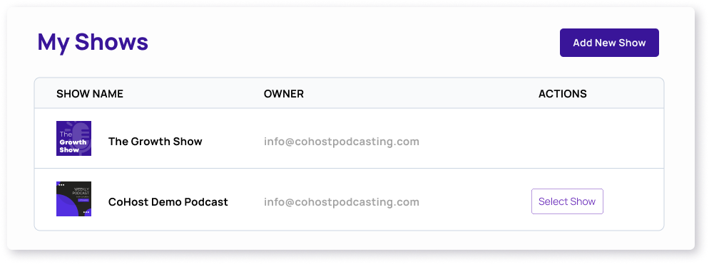 Our plans are priced per show, but you can manage unlimited show plans within your CoHost account, along with unlimited team members.