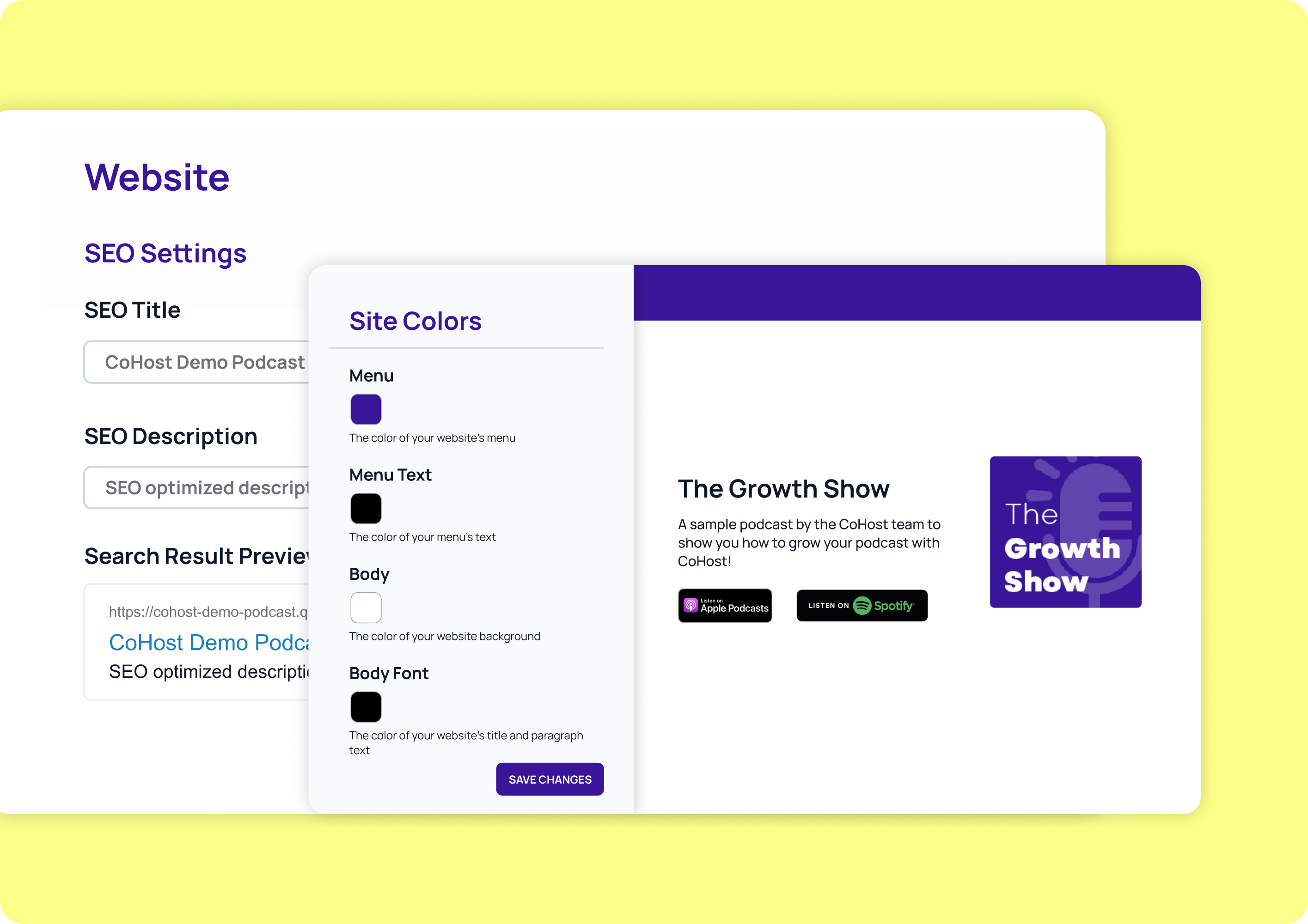 Automatically have a customizable website when you join CoHost. Easily brand your website and manage podcast episodes while boosting visibility and discoverability